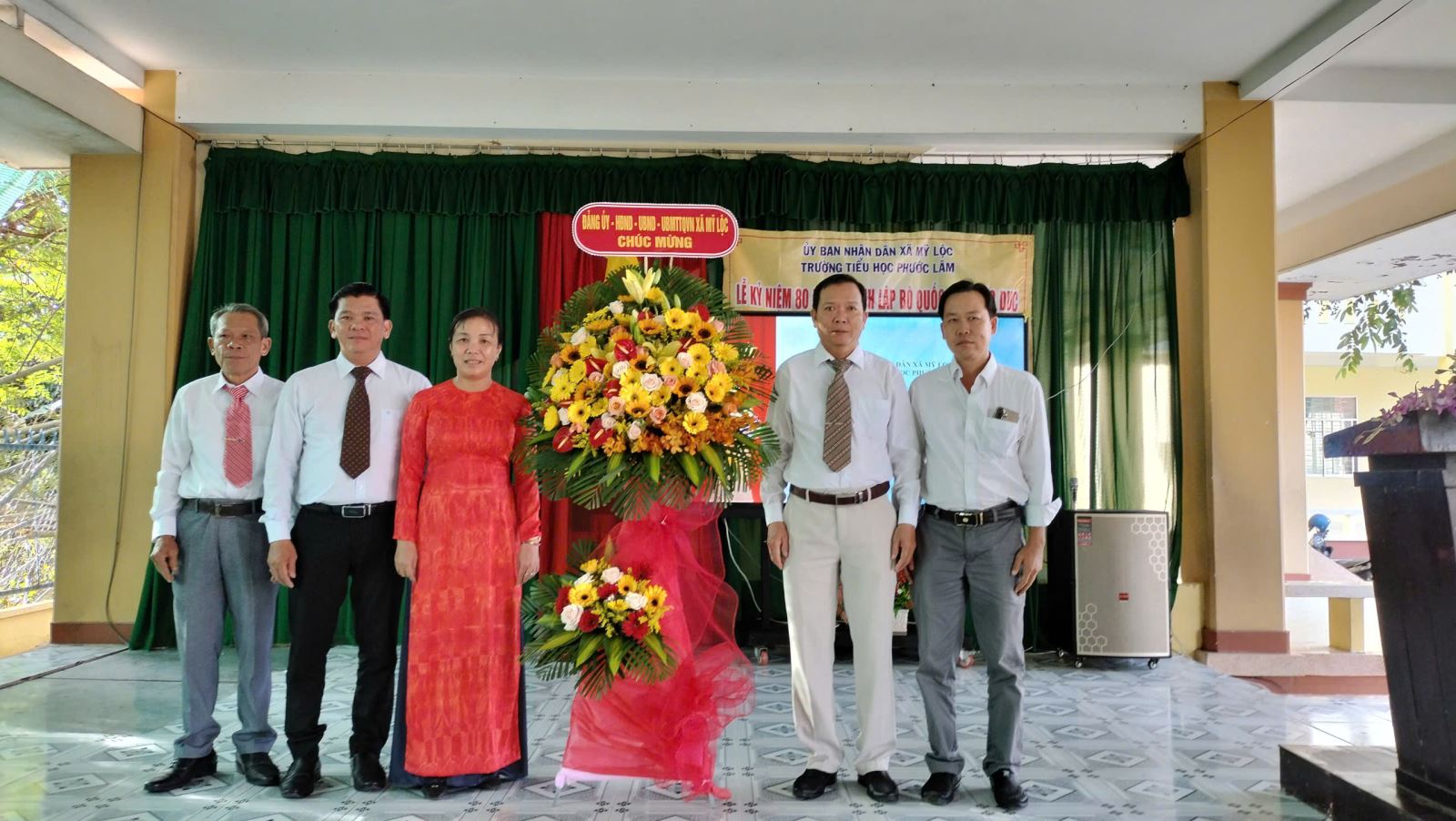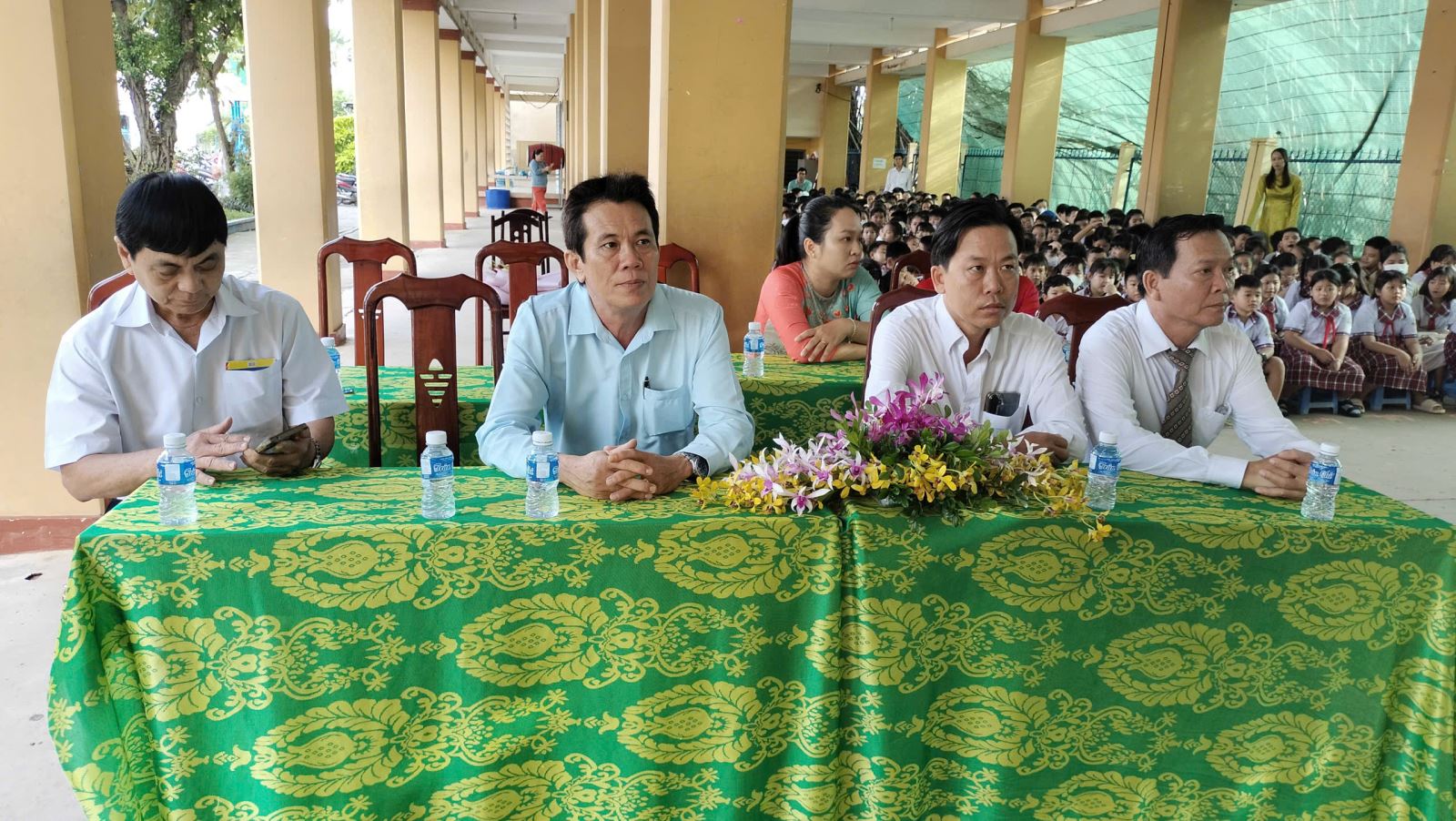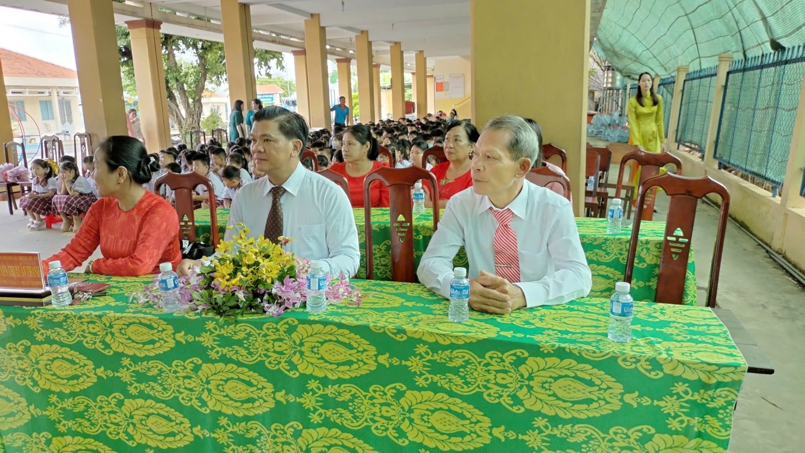 Lãnh đạo cùng ban ấp, ban đại diện cha mẹ học sinh, hiệu trưởng nhà trường, giáo viên và học sinh dự lễ.